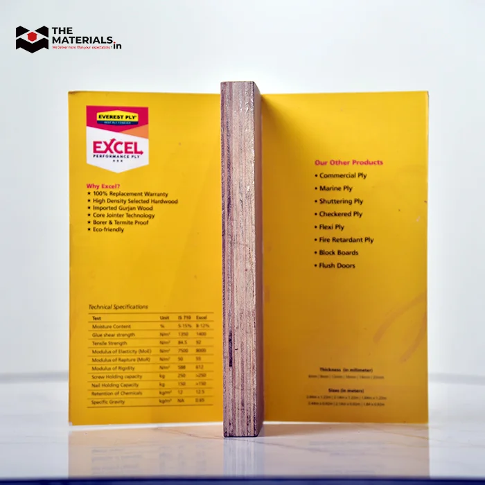 At THE MATERIALS, our Everestply Excel Plywood is engineered for exceptional quality and durability, making it the perfect choice for a variety of interior applications. With excellent moisture resistance and a smooth, polished finish, it ensures long-lasting performance for furniture, cabinetry, and decorative elements, combining strength and style seamlessly.